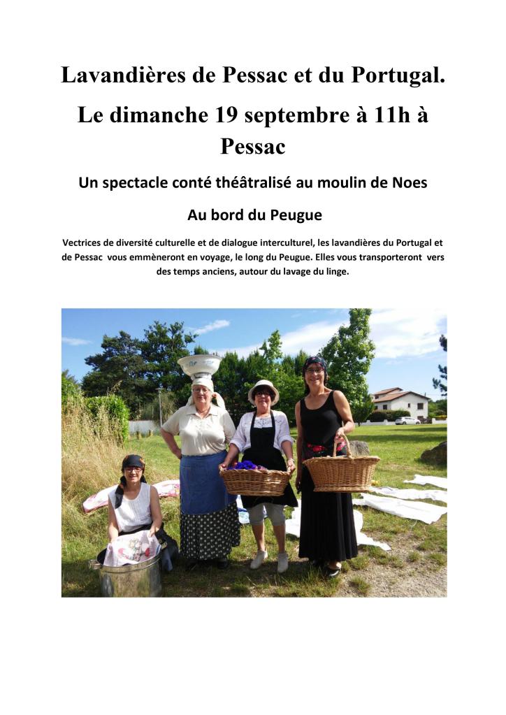 Vectrices de diversité culturelle et de dialogue interculturel, les lavandières du Portugal et de Pessac vous emmèneront en voyage, le long du Peugue. Elles vous transporteront vers des temps anciens, autour du lavage du linge.